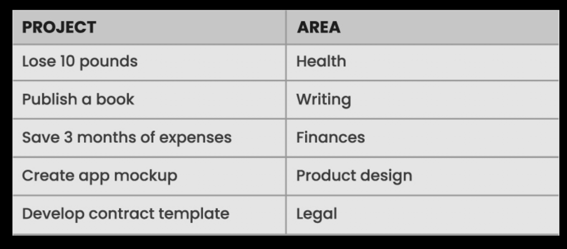 For example tax filing 2024 might be a project (needs immediate attention and has a deadline) while financial management would be the area (where you could lets say put general knowledge about tax management). While immediately actionable or relevant to coming deadline sort of stuff (for example this year’s account statements would go in FY2024 tax filing project). The project would be moved to archive once it’s served its purpose.
